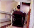 A stairway lift is a simple motorized chair that travels along a rail that is mounted to the stairs. With the push of a button, the individual rides in comfort up or down a flight of stairs. Regardless of whether your stairway is straight or curved, we can accommodate your needs. We recommend you call us so we can help you chose the model and option that will work best for your needs and for the type of stairway you have.
